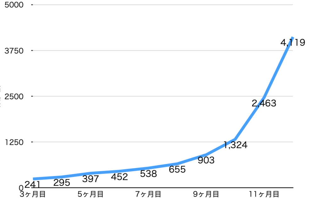 10〜11ヶ月目の伸びは1139PVだったので、明らかにペースアップしています。