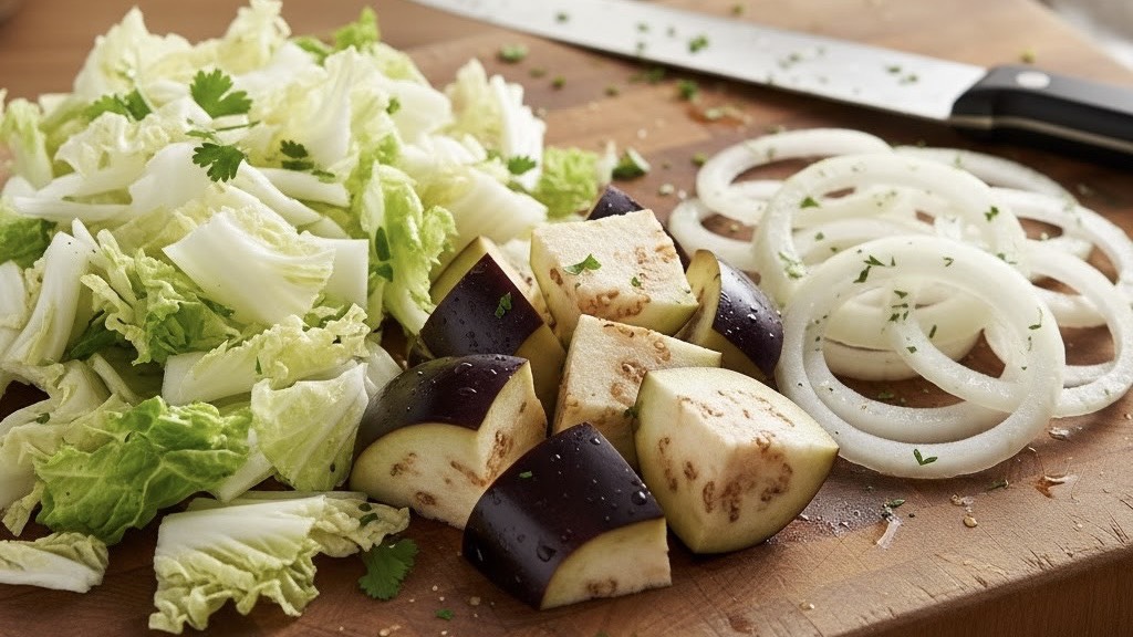ナスがとろっとして、白菜がスープを吸い、玉ねぎが自然な甘みを添えてくれます。