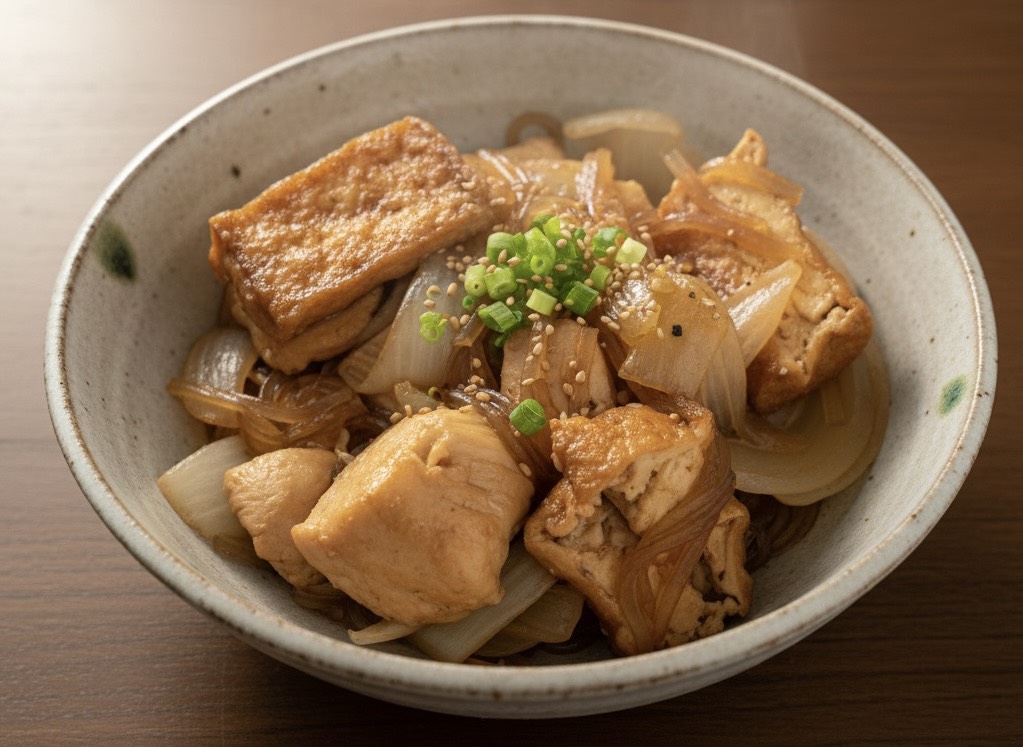 4️⃣ 厚揚げ&玉ねぎを投入